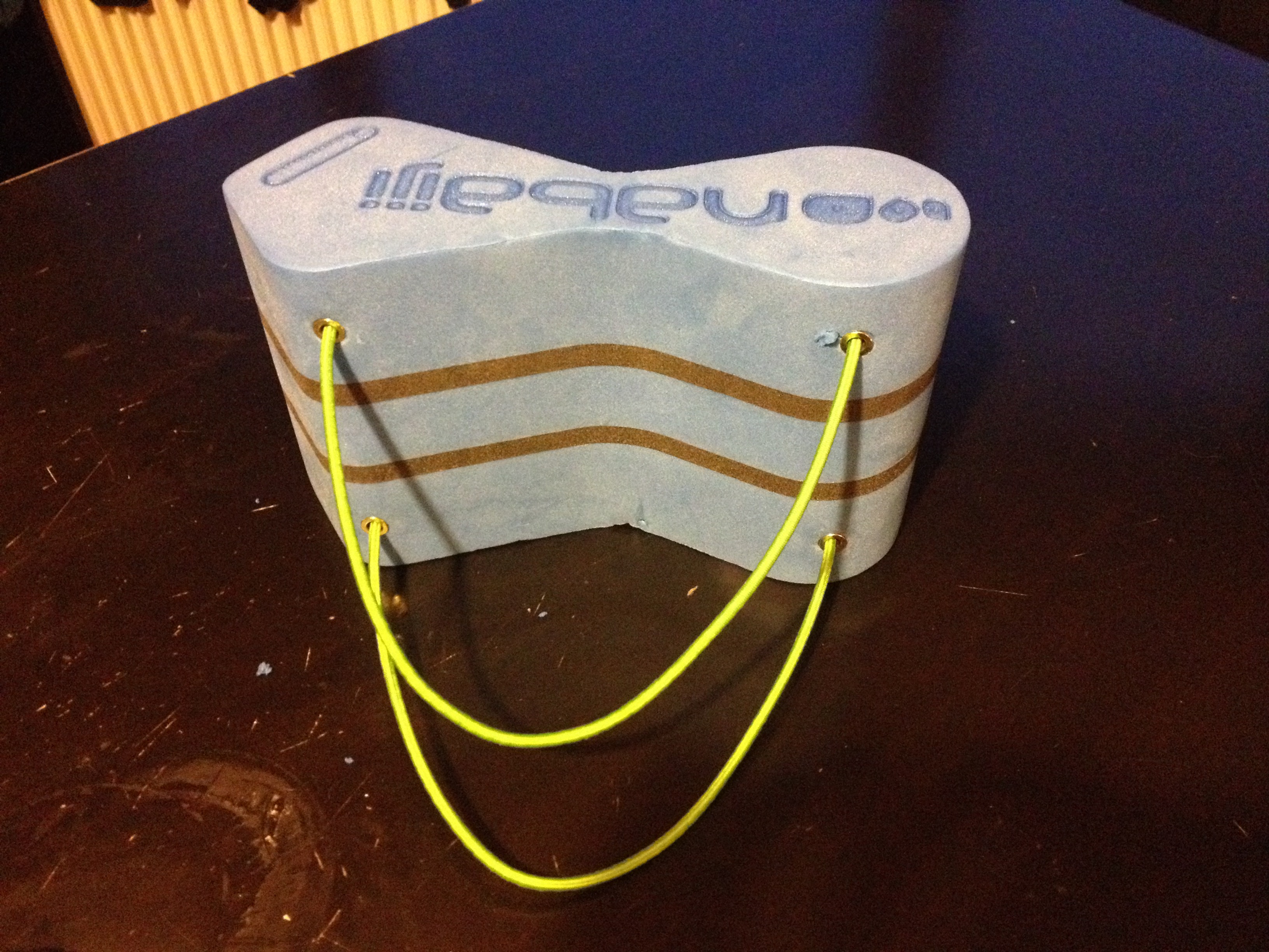 Puis il faut renfiler la combinaison pour s’attaquer à la nage, se qui veut dire poser le sac y ranger les fioles d’eau remplies, retirer le chasuble, remettre la combi, remettre le chasuble trop petit qui colle à la combi et enfin le sac !